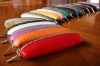 革は、牛革、型押し革、エナメル革など。色についてはお問い合わせください。他にも、オーストリッチ、パイソン革、アザラシ革(こちらは4400円)があります。